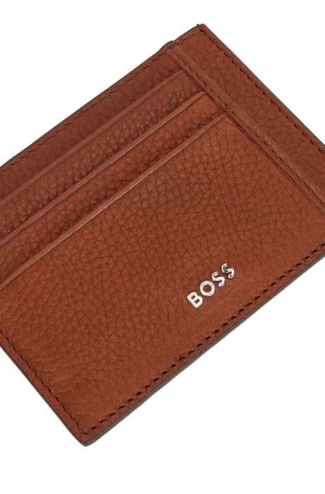 Boss Italian Leather Card Holder With Polished Logo